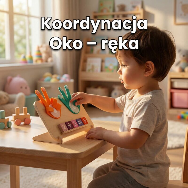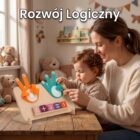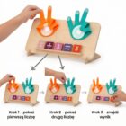 Dzięki kolorowym dłoniom i klockom dziecko łatwo uczy się liczenia na palcach oraz pierwszych działań matematycznych poprzez zabawę.